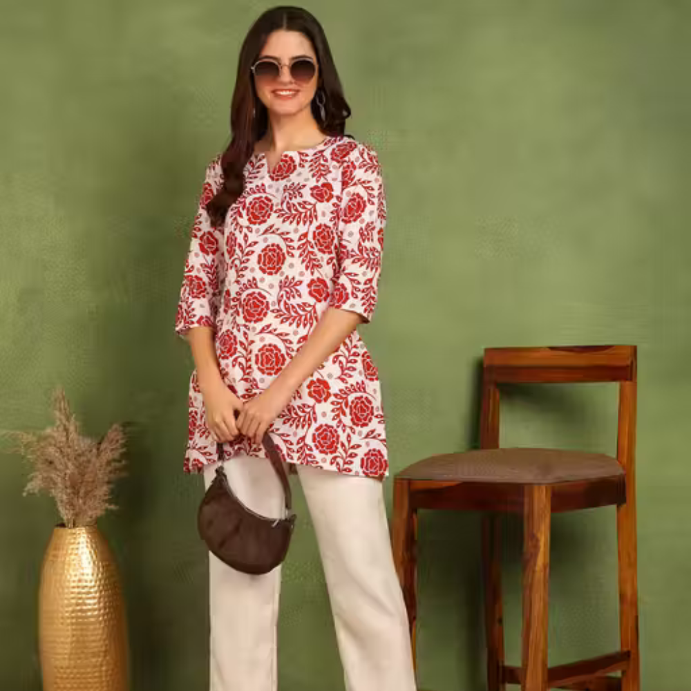 Floral Print Poly Rayon Short Kurtis Comfortably suited for daily & office wear with elegance.